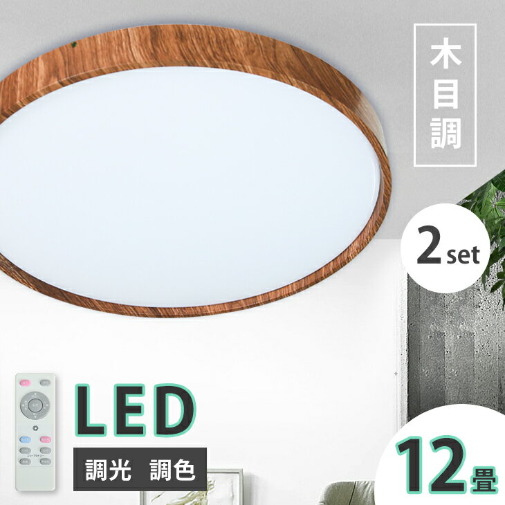 ■【2個】調光調色 シーリングライト 12畳 10畳 8畳 LEDシーリングライト 2年保証 木目調 木枠 リモコン 照明器具 明るい 天井照明 電気 ライト 灯り 子供部屋 おしゃれ きれい LED照明 新築祝い ダイニング リビング 寝室 簡単取付(CH-CLD-804-2SET)
