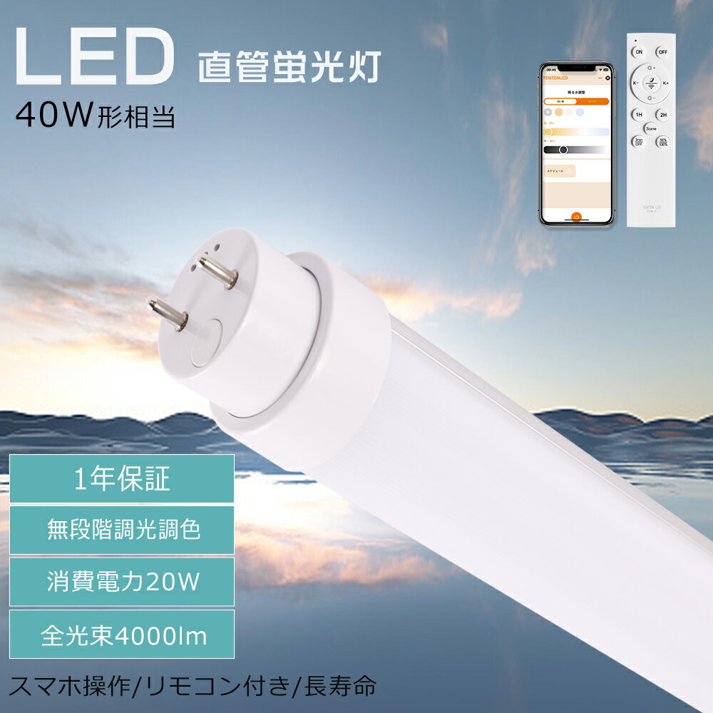 ■LED蛍光灯 40W形 20W形 直管 調光調色 消費電力20W 全光束4000lm G13口金 LED蛍光管 直管LEDランプ LED直管蛍光灯 120cm 58cm 蛍光灯 LED 直管 調光 リモコン操作 スマホ操作 タイマー機能 長寿命 省エネ 簡単取付 店舗 施設照明 1年保証 グロー式工事不要