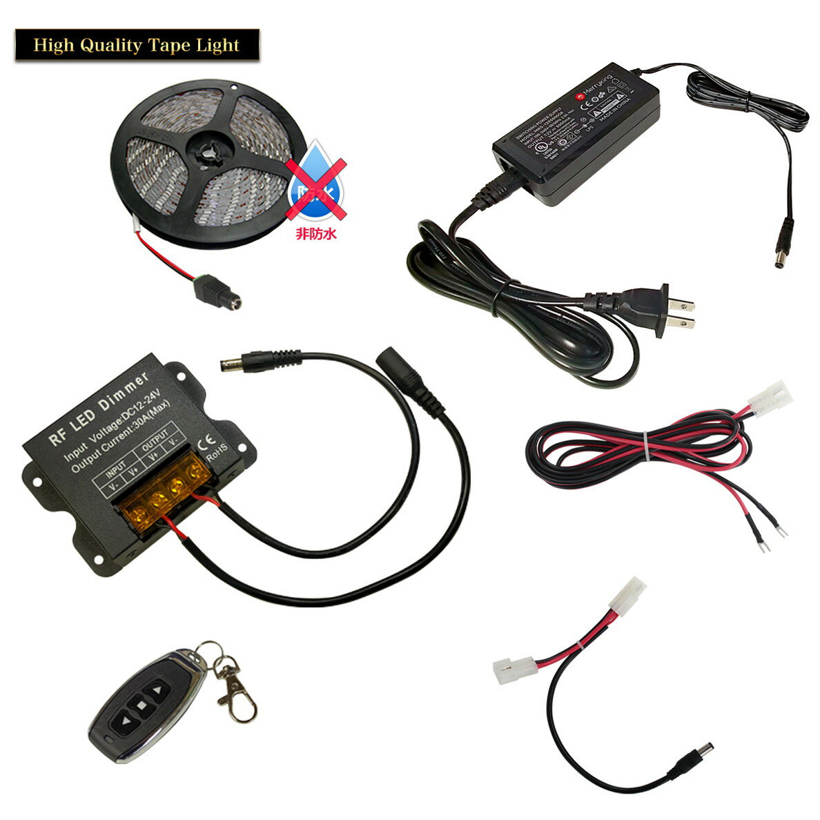 ■LEDテープライト 5m 1本 非防水 3チップ 間接照明 取付簡単 リモコン 調光器 電源 らくらく点灯セット