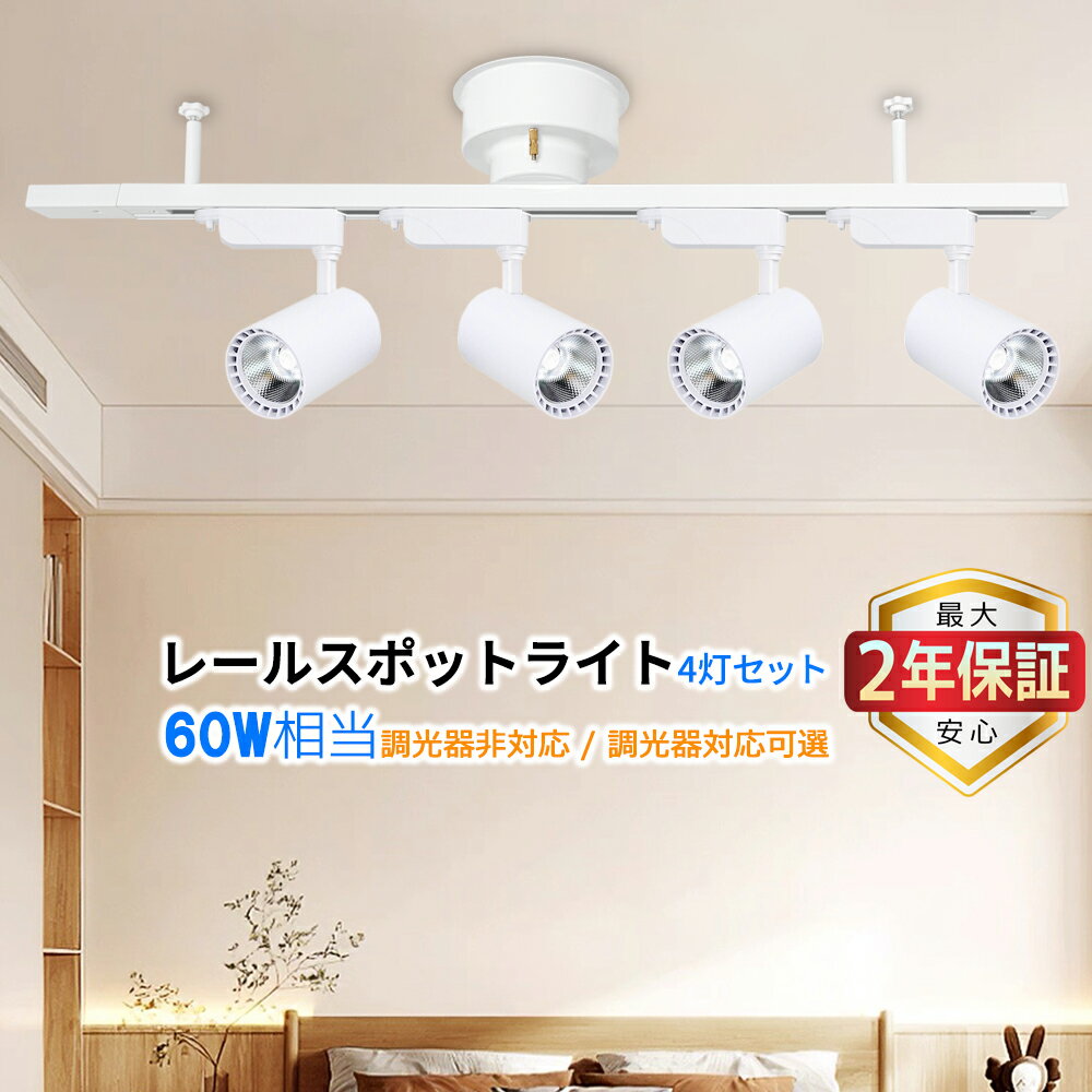 ■【最大2年保証★黒白2色】LEDシーリングライト 4灯 60W相当 調光器対応可選 おしゃれ 北欧 シンプル ライティングレール用スポットライト 天井照明 一体型照明 電球交換不要 取付簡単