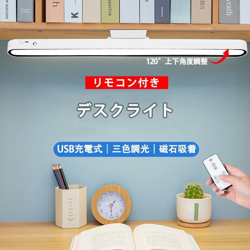 ■デスクライト マグネット USB 充電式 目に優しい 調光 調色 LED クリップライト リモコン 読書灯 学習机 学生用 寮 寝室 照明 led照明器具 取付簡単 磁石 コードレス 生徒 学生 プレゼント