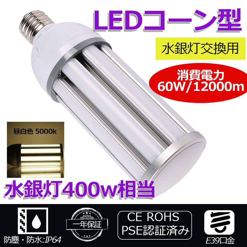 ■60w led PSE適合製品 色選択 コーン型 led電球 led 水銀灯 コーンライト 防水 天井照明 街路灯 密閉型器具対応 屋内外兼用 400W水銀灯相当 水銀灯代わり led電球 60w LED水銀ランプ ハロゲン電球 照明器具交換可能 簡単取付 LED コーンライト コーン型水銀灯 昼白色5000k