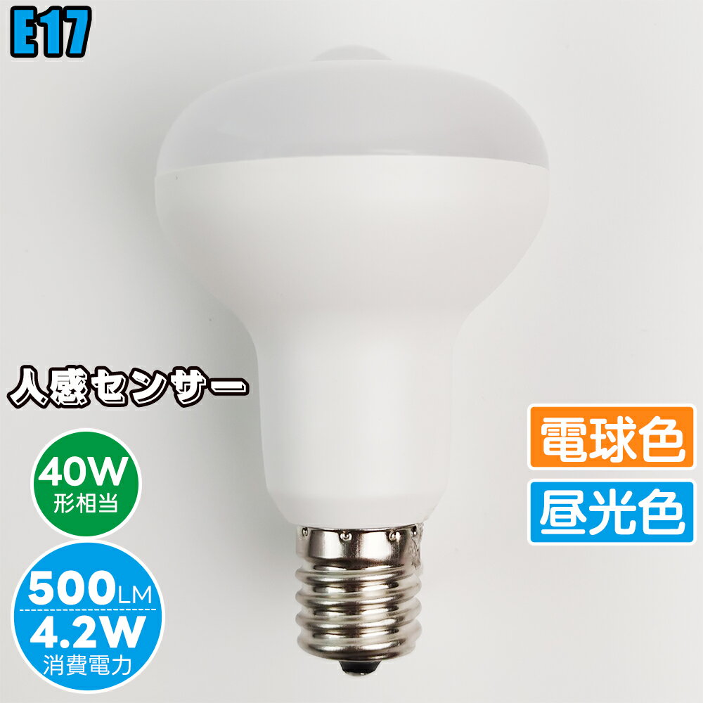 ■人感センサー led電球 E17 センサー電球 【4.2W 500LM 120秒】人感センサー付 40W相当 照明器具 センサー ライト電球色 昼光色 500LM 自動点灯 消灯 明暗センサー付 廊下灯 玄関灯 洗面所 階段 室内用 取付簡単 工事不要 節電 単品