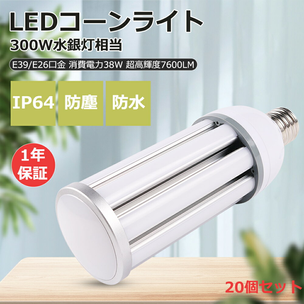 ■20個入り LEDコーンライト ウモロコシ型 消費電力38W LED電球 E26/E39口金 7600LM 水銀灯からLEDへ交換 LED水銀灯ランプ コーンライト LED コーン型LED電球 防水 軽量型 水銀灯代替 LED投光器 ハロゲン電球 LED水銀灯 LED電球 広角360° 長寿命 省エネ 高輝度 密閉器具対応