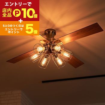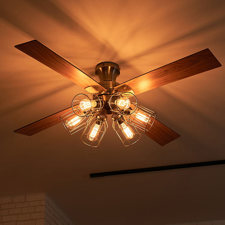■【エントリーでP10倍!クーポン有!スーパーSALE】シーリングファン JAVALO ELFヴィンテージコレクション 6灯 JE-CF055 GD ゴールド VINTAGE Collection ジャヴァロエルフ 木目調 エジソン電球付き LED 白熱電球 電球型蛍光灯 オールシーズン リバーシブル リモコン