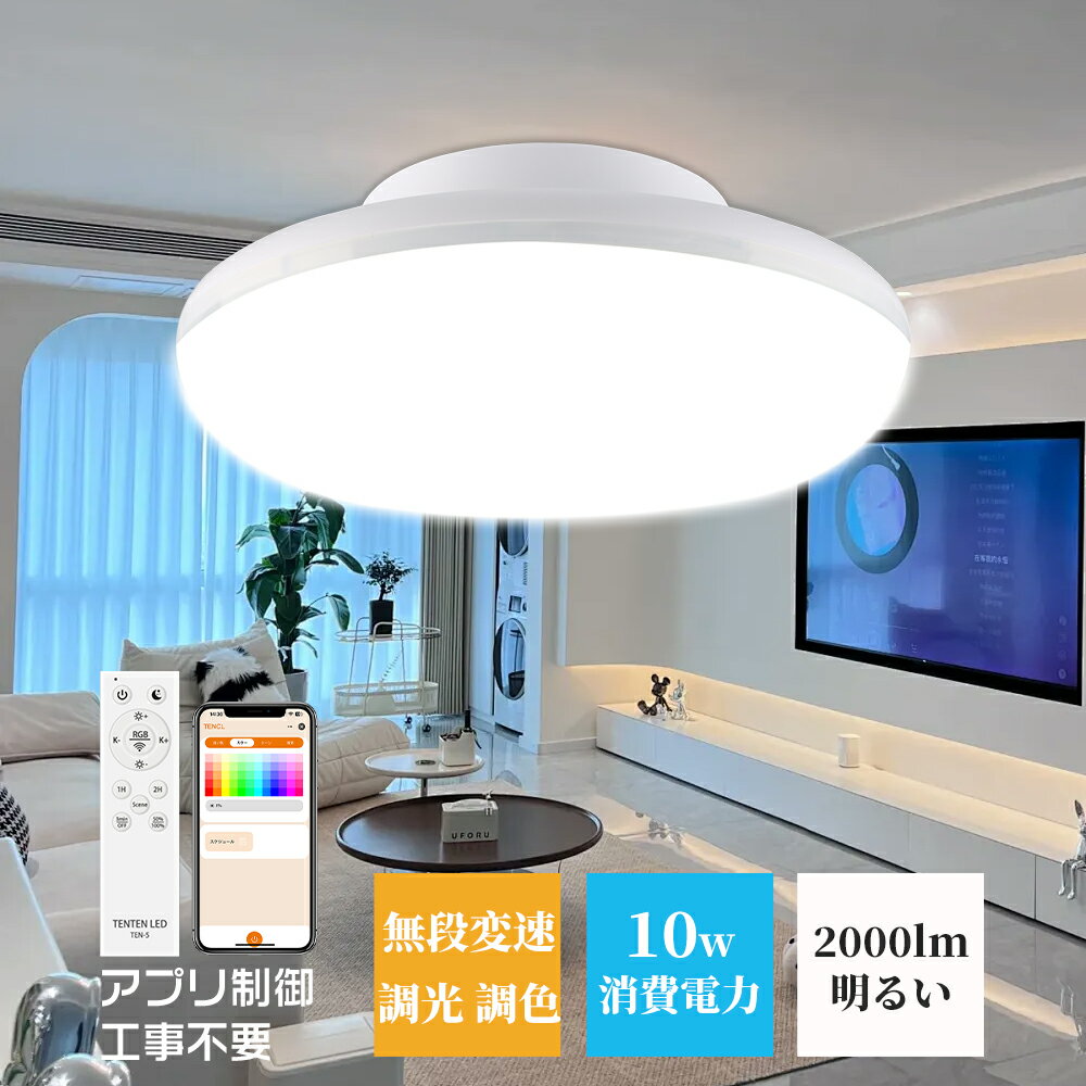 ■色を自由に調 LEDシーリングライト 10W 100W相当省エネ 2000lm 4.5畳 6畳 8畳 小型 ミニシーリング インテリア引掛式 工事不要 洗面所 台所 和室 廊下 玄関 高天井 天井照明コンパクト 照明器具 色選択 節電 取付簡単 PSE認証済 50000h長寿命 リモコン付き 調光調色