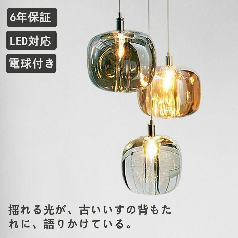 ■ペンダントライト ダイニング おしゃれ ガラス 北欧 吊下げ灯 LED電球付き 吊り下げ LED 天井照明 吊り下げライト 和室 1灯 明るい 引っ掛けシーリング 照明器具 コード調整 人気 キッチン 電球色 取付簡単 リビング カフェ インテリア 食卓 レトロ 雰囲気ライト【6年保証】