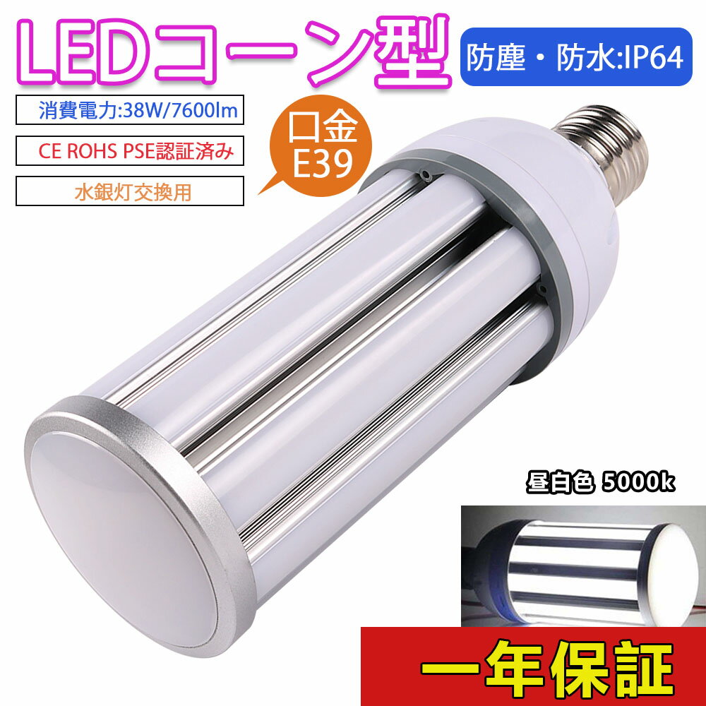 ■水銀灯 LED e39 ソケット LED電球 e39 省エネ 電源内蔵 LED水銀ランプ ハロゲン電球 照明器具交換可能 簡単取付 おしゃれコーンライト LED コーンライト コーン型水銀灯 E39 LED電球 水銀灯交換用 明るい7600LM E39口金 38W 昼白色 IP64 防水 防塵 昼白色5000k