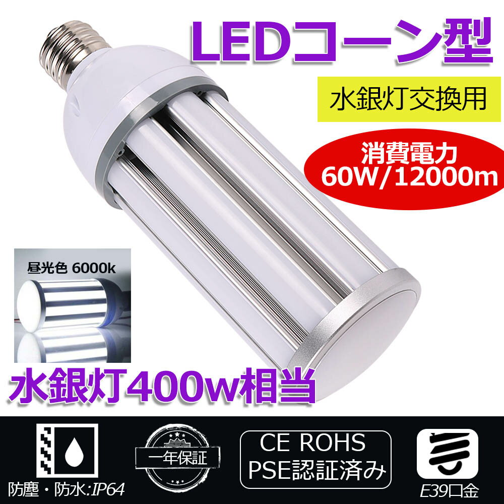 ■送料無料 LED水銀ランプ 60W E39 400W相当水銀灯交換用 LEDコーンライト LED電球 E39 400W 12000LM 街路灯 防犯灯 天井照明 街路灯 コーン型水銀灯 ハロゲン電球 照明器具交換可能 LED施設照明 庭園灯 おしゃれコーンライト 簡単取付 密閉型器具対応 駐車場 商店街 1年保証
