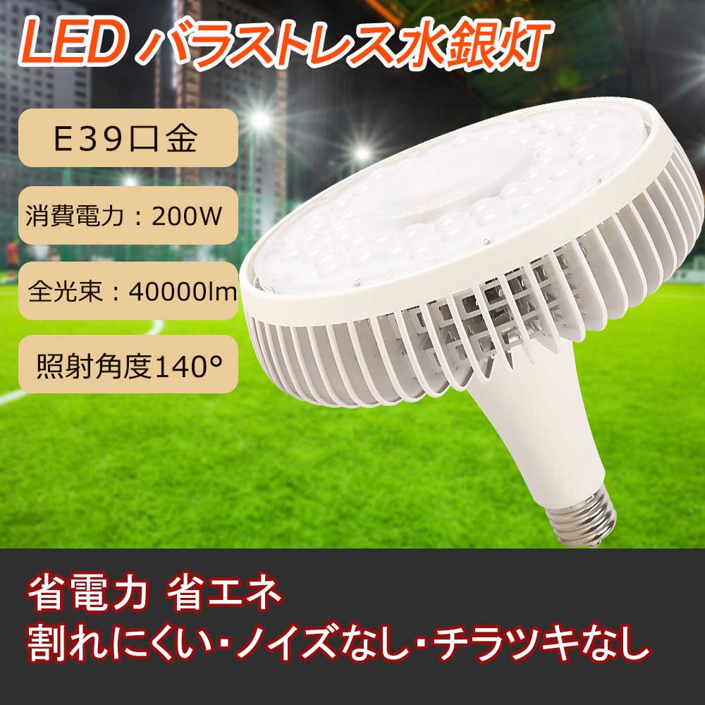 ■PSE認証 1年保証 LEDバラストレス水銀灯 200W E39 高輝度40000lm E39兼用口金 節電 LED電球 2000w相当 ビーム角140度 バラストレスLED電球 ビームランプ形 led LED産業用ライト 廊下 工場 営業所 キッチン 無騒音 無輻射 チラつきなし 割れにくい 50000h長寿命