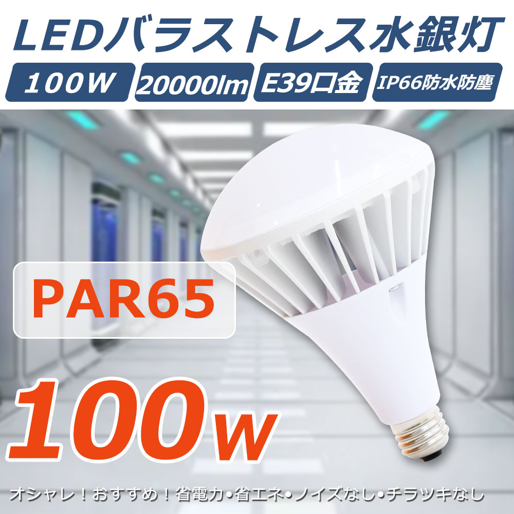 ■LEDバラストレス水銀灯 口金E39 100w 全光束20000lm 高輝度 1000W相当 IP66防塵防水 par65 照射角度140° LEDビーム電球 ledバラストレス水銀灯代替用 LED水銀灯 LEDバラストレス水銀灯 LEDハロゲン 電球形 ビーム型led電球 工事不要 エコ照明 施設照明 PSE認証 昼光色6000k