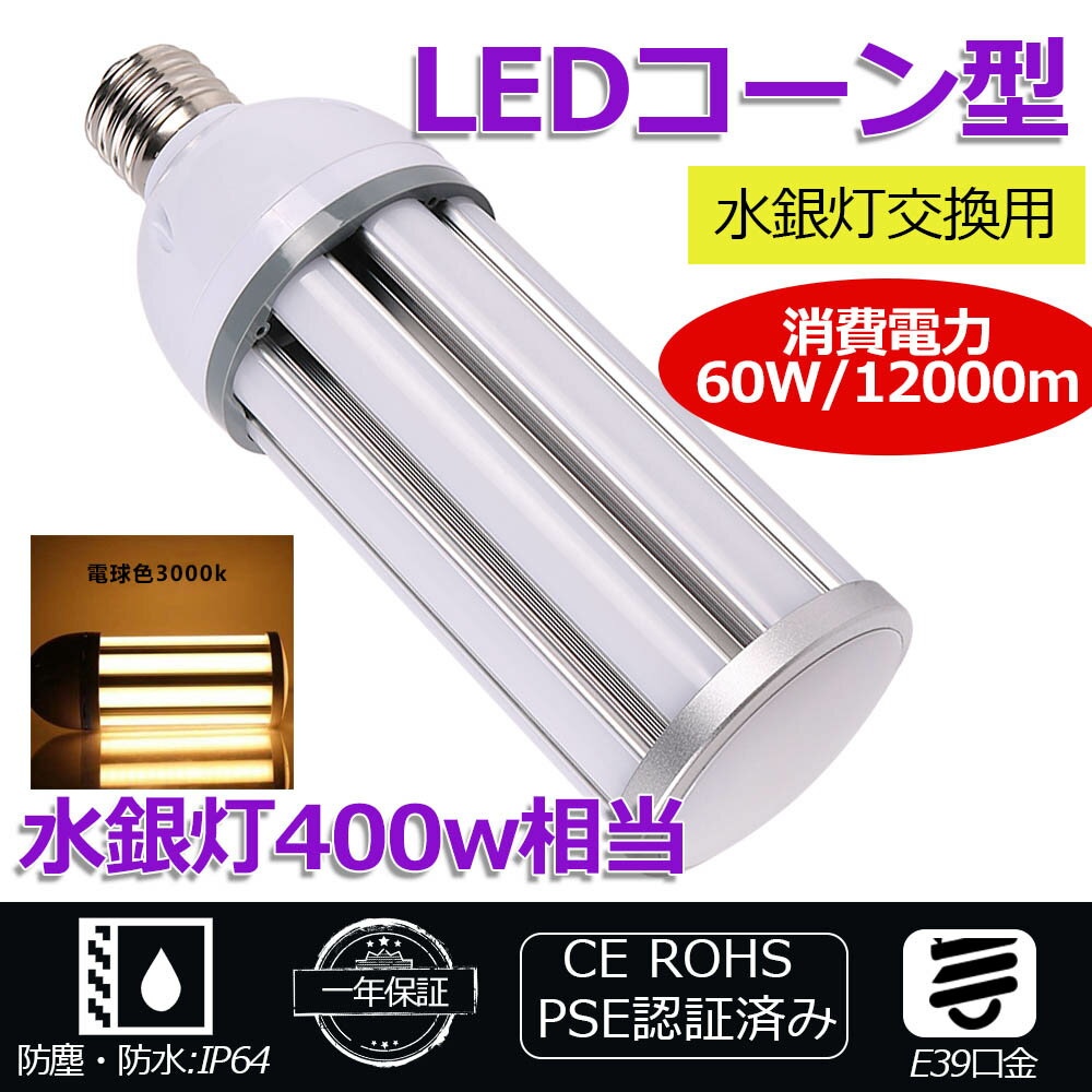■60w led PSE適合製品 色選択 コーン型 led電球 led 水銀灯 コーンライト 防水 天井照明 街路灯 密閉型器具対応 屋内外兼用 400W水銀灯相当 水銀灯代わり led電球 60w LED水銀ランプ ハロゲン電球 照明器具交換可能 簡単取付 LED コーンライト コーン型水銀灯 電球色3000k