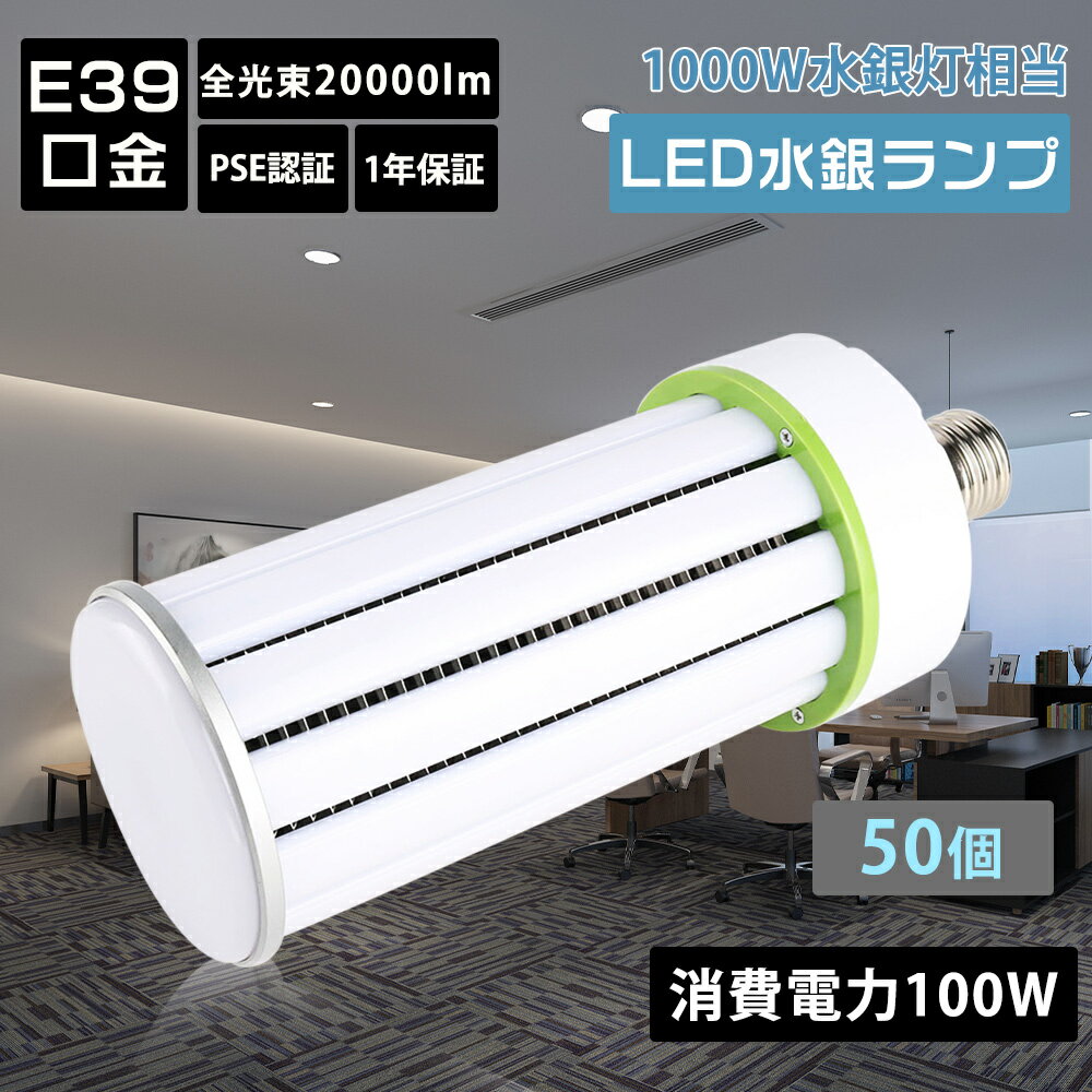 ■【50個セット】LEDコーンライト e39 コーン型LED照明 消費電力100W 軽量型 照射角360度 20000lm 高輝度 電源内蔵 led水銀灯 E39口金 水銀灯代わり LEDライト 水銀灯交換用 ハロゲン電球 led化 エコ led投光器 工場作業灯 街路灯 防犯灯 照明 led 工場 看板 高天井 照明器具