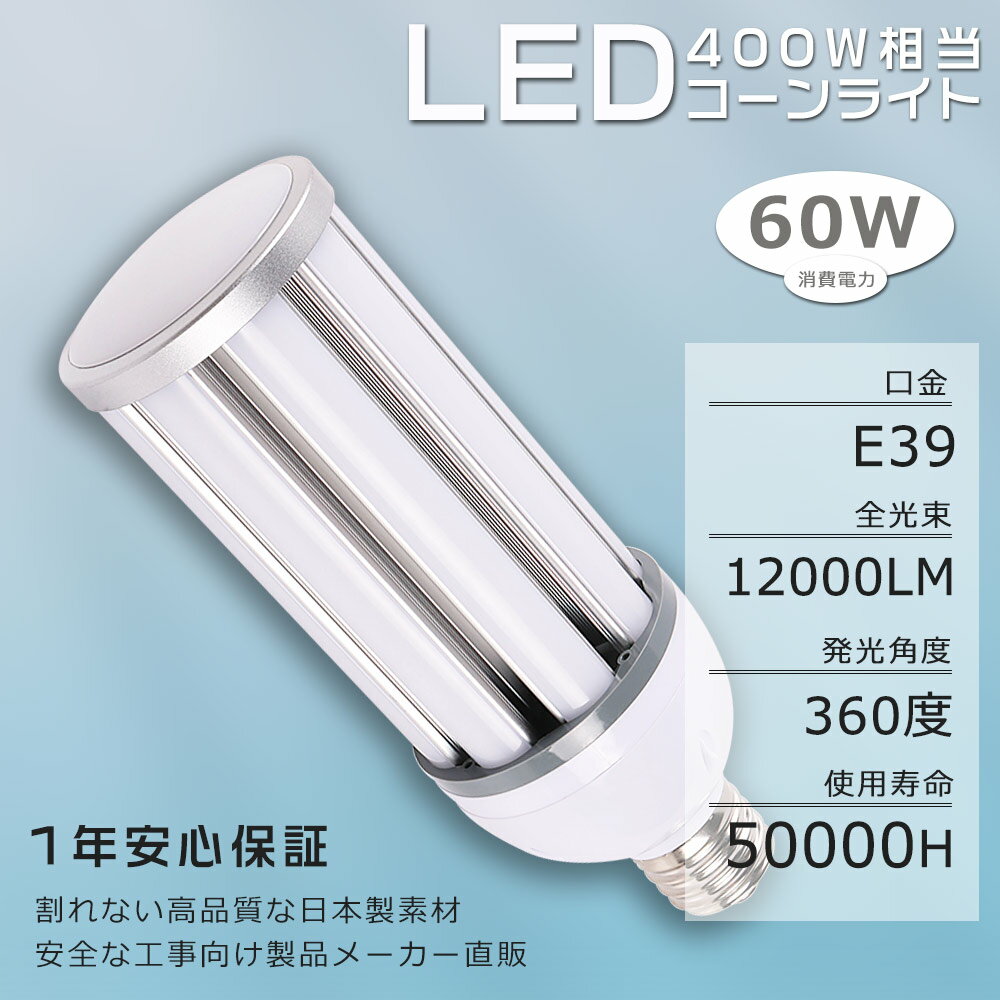 ■送料無料 LED水銀ランプ E39 400W相当水銀灯交換用 LEDコーンライト LED電球 E39 60W 12000LM 街路灯 防犯灯 天井照明 街路灯 コーン型水銀灯 ハロゲン電球 照明器具交換可能 LED施設照明 庭園灯 おしゃれコーンライト 簡単取付 密閉型器具対応 駐車場 商店街 1年保証