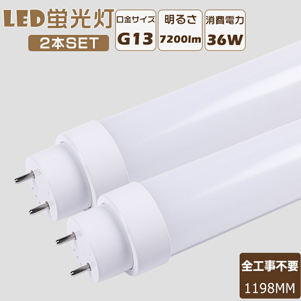 ■2本セット 全工事不要 LED蛍光灯 40W形 直管 グロー式 インバーター式 ラピッド式 FL40 FLR40 FHF32 LED直管蛍光灯 LEDランプ 蛍光灯 40形 LED 40W 直管 LED直管蛍光灯 工事不要 消費電力36W 高輝度7200lm G13口金 1198mm LED蛍光灯 直管 40W型 天井照明 2年保証 取付簡単