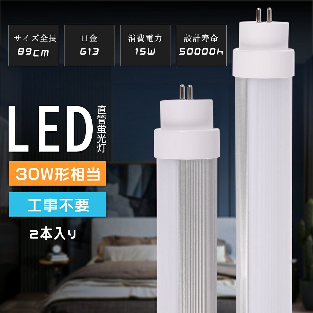 ■2本セット【全工事不要】LED蛍光灯 30W形 直管 89cm 高輝度 3000LM LED素子 G13口金 T10 LED 蛍光灯 消費電力15W LEDライト 広角 軽量 防虫 おしゃれ蛍光灯 led 30w型 直管形蛍光灯 蛍光ランプ グロー式 ラピット式 インバーター式 工事不要 取付簡単 節電 エコ照明 送料無料