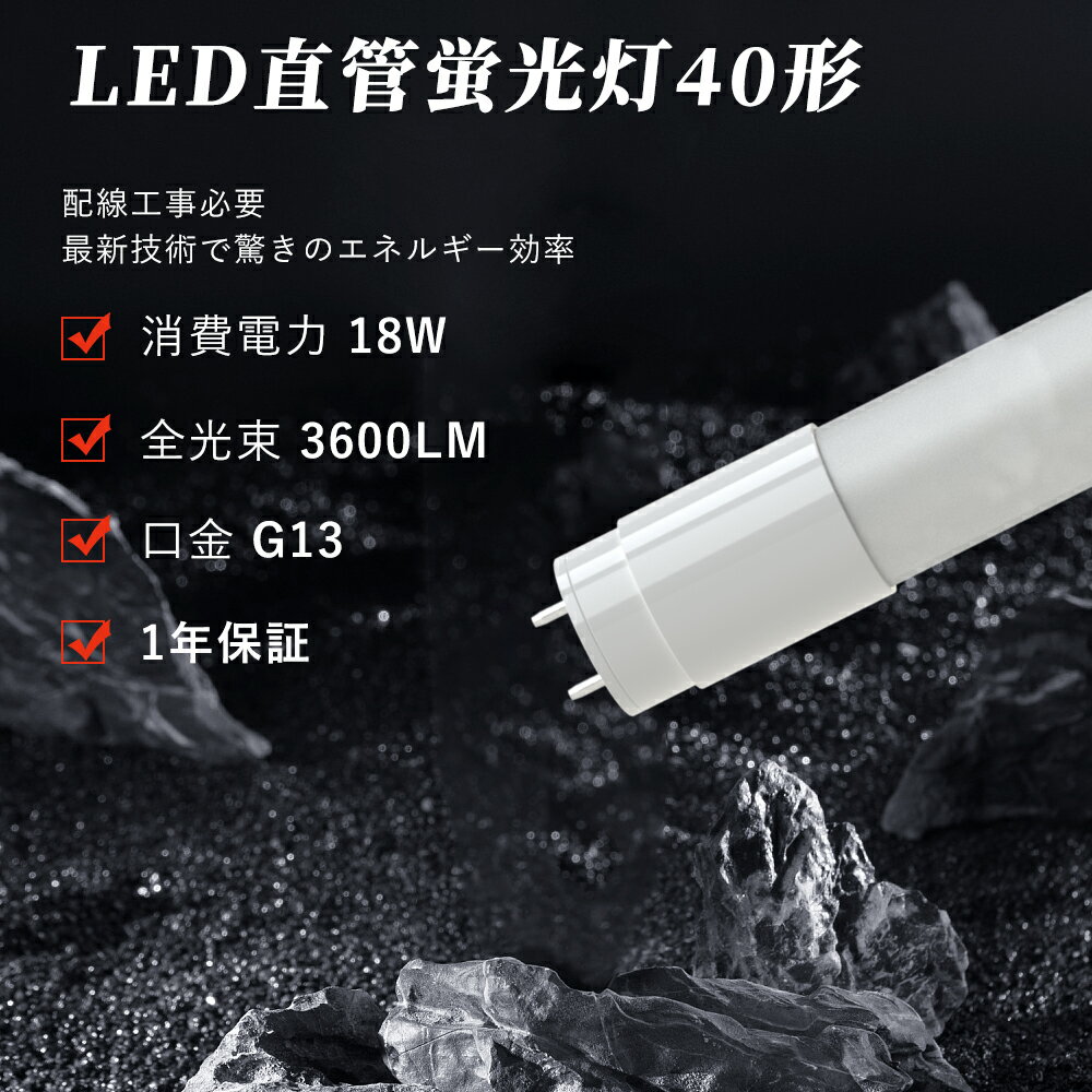 ■LED蛍光灯 40W形 直管 120cm グロー式 工事不要 消費電力18W 節電 明るい 3600ルーメン 高輝度 LED直管蛍光灯 led照明 蛍光灯 天井用LED 省エネ LED蛍光灯器具 T8 施設照明 店舗照明 工場用led照明 led蛍光灯 40W形 直管蛍光灯型ランプ G13 広角320度 取付簡単 PSE認証 即納