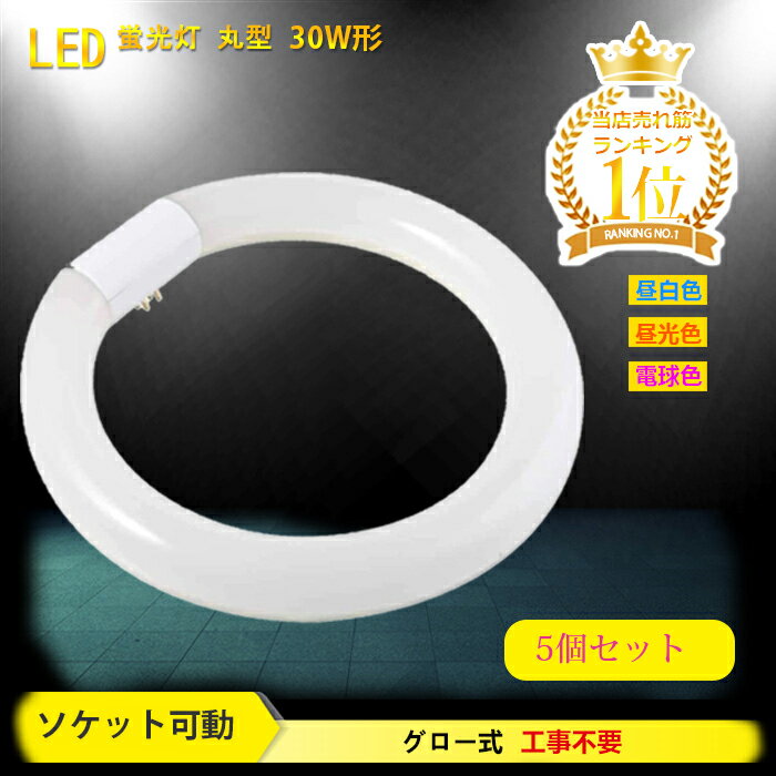 ■【全品クーポン配布中】【送料無料】丸型蛍光灯 led 30w形 蛍光灯【5個セット】 照明器具 天井 led蛍光灯 ledライト 30形 led照明 led丸型蛍光灯 led 円型蛍光灯 丸形 天井照明 グロー式 工事不要 昼白色 昼光色 電球色 口金可動式 高輝度 PL保険加入済 あす楽