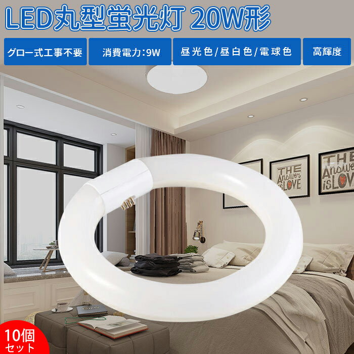 ■【10個セット】LED蛍光灯 20w形 丸型蛍光灯 丸型 LED 蛍光灯【送料無料】照明 ledベースライト ledライト 20形 led照明 LED蛍光灯 高輝度 グロー式 工事不要 昼光色 昼白色 電球色 LED照明器具 LEDランプ LEDライト 天井照明 ソケット可動 長寿命 省エネ PL保険加入済 即納