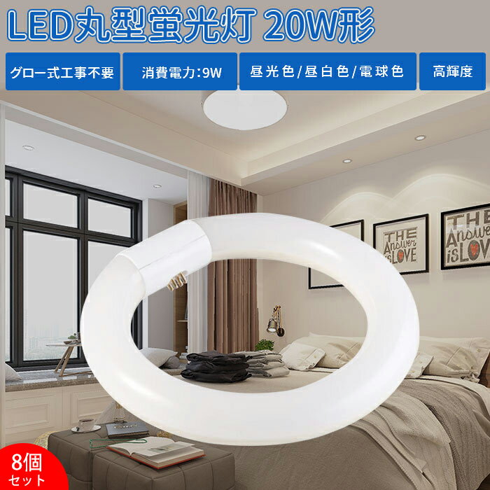■【8個セット】LED蛍光灯 20w形 丸型蛍光灯 丸型 LED 蛍光灯【送料無料】照明 ledベースライト ledライト 20形 led照明 LED蛍光灯 高輝度 グロー式 工事不要 昼光色 昼白色 電球色 LED照明器具 LEDランプ LEDライト 天井照明 ソケット可動 長寿命 省エネ PL保険加入済 即納