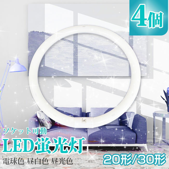 ■【4個set】LED蛍光灯 20w形 30w形 丸型蛍光灯 丸型 LED 蛍光灯照明 ledベースライト ledライト 20形 30形 led照明 LED蛍光灯 高輝度 グロー式 工事不要 昼光色 昼白色 電球色 LED照明器具 LEDランプ LEDライト 天井照明 ソケット可動 長寿命 省エネ PL保険加入済 送料無料
