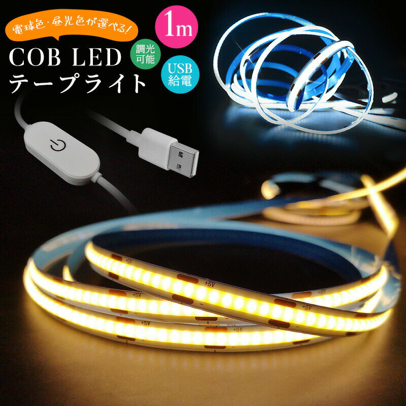 ■COBテープライト COB 高輝度 COBテープ 1M 3000K 6000K USB給電式 切断可能 両面テープ 玄関 台所 廊下 DIY照明 棚下照明 間接照明 屋内装飾 祝日用 雰囲気作り 取付簡単 調光可能 電球色 昼光色 非常灯 足元灯 DC12V LEDストリップライト LEDテープライト 明るい 高評価5点