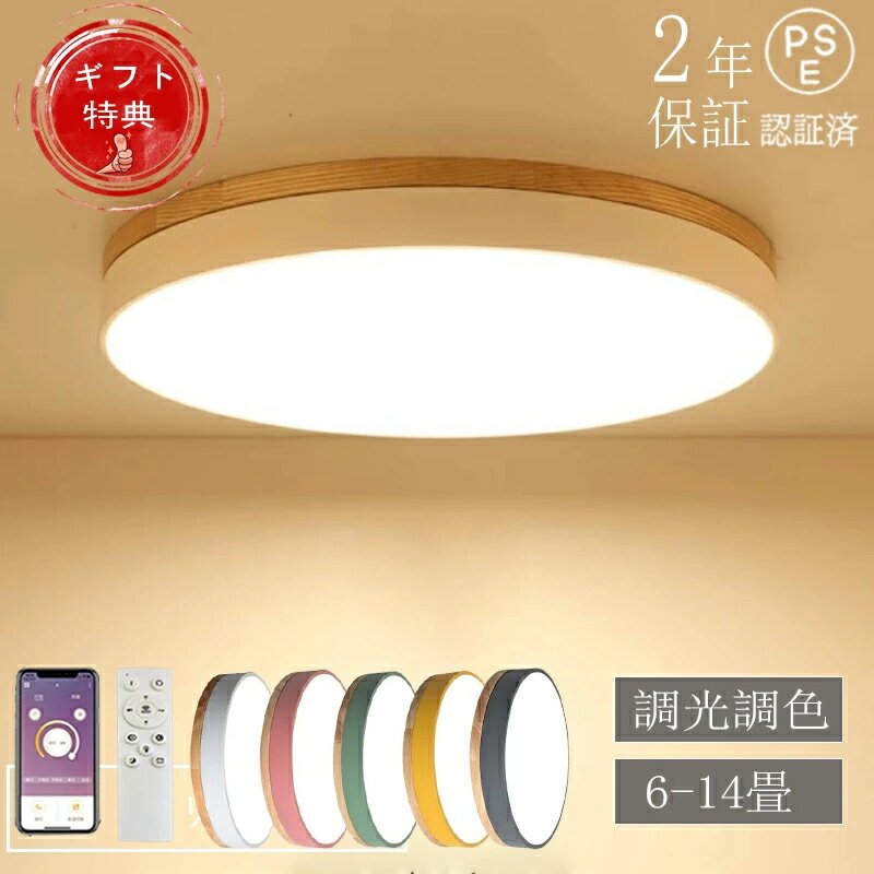 ■【5年保証】シーリングライト 調光調色 LED リモコン付 ledシーリングライト 6畳 8畳 10畳 12畳 間接照明 常夜灯付き 電気 照明 天井照明 おしゃれ 照明器具 木目調 薄型 北欧 明るい 電球色 コンパクト 節電 工事不要 簡単取付 リビング 子供部屋 寝室 和室 洋室 新居