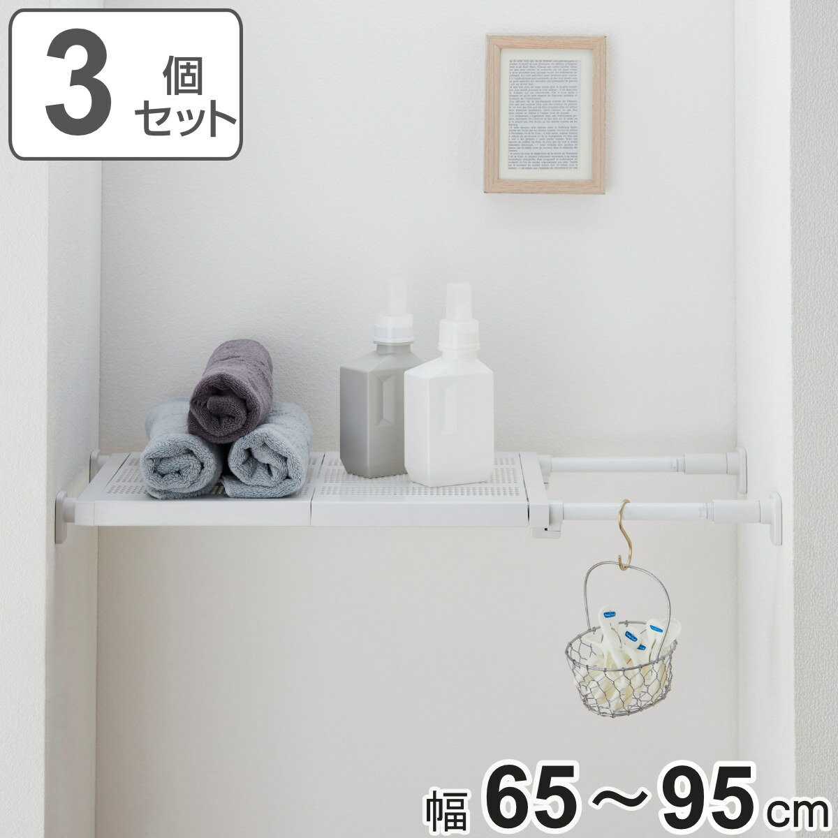 ●【サイズ】幅45-67×高2.5×奥行23cm(棚部奥行20.5cm) 【取付幅】45~67cm●【耐荷重】45cm時15kgまで/67cm時10kgまで 【本体重量】0.3kg【カラー】ホワイト●【材質】〈パイプ〉鉄・エポキシ樹脂粉体塗装 〈樹脂部分〉ABS樹脂・合成ゴム 〈ねじ類〉鉄・メッキ●ネジ・釘不要・取り付け取り外しが簡単●いろんな空間を簡単にムダなく効率化できる突っ張り棚。段差のある...