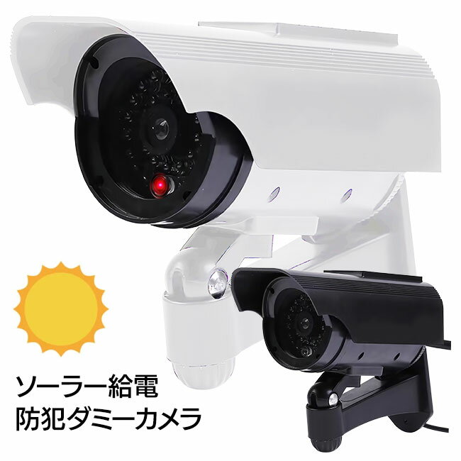 電池&ソーラー給電式防犯用ダミーカメラ 正面のダミーレンズ下部のLEDランプが点滅します。 JAN 4570139531813・シルバー JAN 4570139531820・ブラック 電源 ソーラー給電もしくは単三アルカリ乾電池×2本(別売) ※充電式ではありません。太陽光の無い暗所などでは乾電池を入れてご使用ください。 サイズ 約H10.8×W8.5×D17.4cm 重量 約260g 上下の傾き...