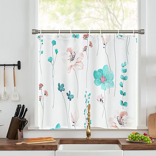 AooHome お風呂小窓カーテン 浴室窓カーテン 60cm丈 防水防カビ 防水防カビ 目隠し 断熱 シャワーカーテン 速乾 間仕切り 高密度生地 ユニットバス 浴室 花柄 リング付き 取付簡単 ブルーブランドAooHome色ブルー・flowerモデル商品説明【商品概要】優れた品質 - 当社の小窓浴室カーテンは100%ポリエステル製でにおい無し、柔らかくて手触りよく、耐久性があり軽量な素材です。 ...