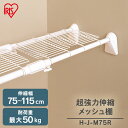 - 突っ張り棚 強力 75〜115cm 収納 洗面所 突っ張り棒 ラック 省スペース 脱衣所 押し入れ 奥行27cm 段差対応 取付簡単 工具不要 超強力伸縮メッシュ棚 ホワイト アイリスオーヤマ H-J-M75R