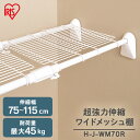 突っ張り棚 強力 収納 洗面所 突っ張り棒 ラック 省スペース 脱衣所 押し入れ 奥行33cm 75〜115cm 段差対応 取付簡単 工具不要 超強力伸縮ワイドメッシュ棚 ホワイト アイリスオーヤマ H-J-WM70R