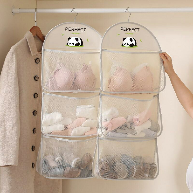 ■クローゼット吊り下げ収納 収納袋 吊り下げ 透明 省スペース 大容量 取付簡単 衣類 下着 パンツ ブラジャー 靴下 ネクタイ 収納ポケット 収納バッグ メッシュポケット 吊り下げバッグ 壁掛け