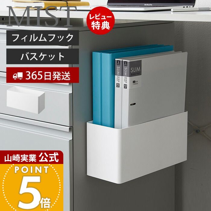 ■【365日出荷&当店限定特典付き】山崎実業 フィルムフックストレージバスケット ミスト MIST 公式 バスラック キッチンラック スパイス 小物収納 ラック フック 洗面台 浴室 ランドリー 洗濯機 キッチン 浮かせる 2171 ホワイト