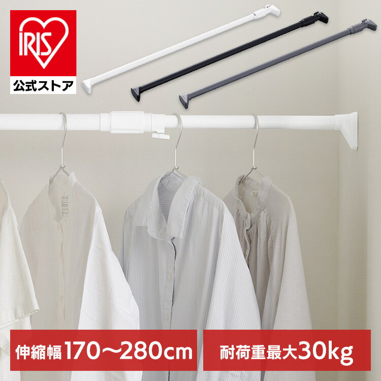 ■突っ張り棒 強力 170〜280cm 物干し 突っ張り 収納 洗濯物干し ハンガーラック ポールハンガー クローゼット 衣類収納 取付簡単 工具不要 強力伸縮棒 ホワイト ブラック グレー アイリスオーヤマ H-NPJ-280R