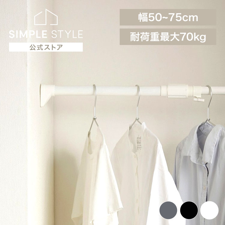 ■【LINEお友だち登録で最大1,500円OFFクーポン】突っ張り棒 強力 物干し 突っ張り 収納 洗濯物干し ハンガーラック ポールハンガー クローゼット 衣類収納 50〜75cm 取付簡単 工具不要 強力伸縮棒 ホワイト ブラック グレー H-NPJ-75R