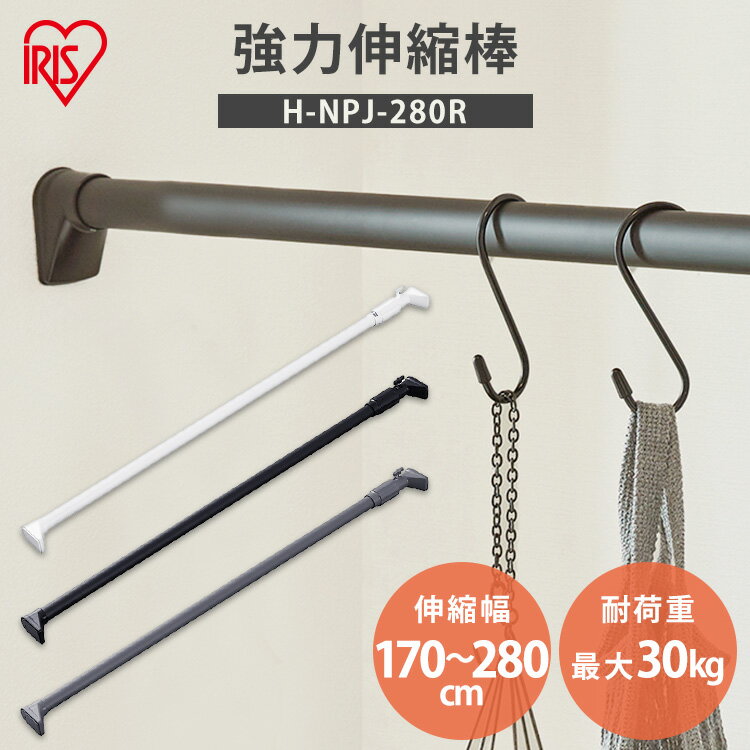 ■突っ張り棒 強力 物干し 突っ張り 収納 洗濯物干し ハンガーラック ポールハンガー クローゼット 衣類収納 170〜280cm 取付簡単 工具不要 強力伸縮棒 ホワイト ブラック グレー アイリスオーヤマ H-NPJ-280R