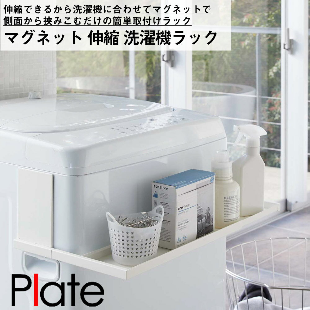 ■マグネット伸縮洗濯機ラック プレート ホワイト 山崎実業 おしゃれ シンプル 高見え 便利 バス・サニタリー ランドリー アタッチメント 拡張 磁石 収納 物置