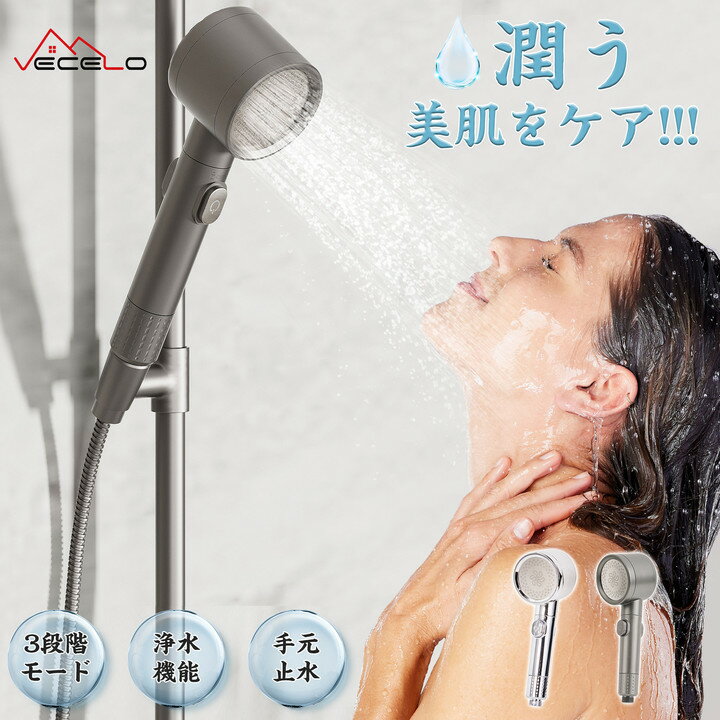 ■【10%OFFクーポン配布中&P10倍】シャワーヘッド 節水シャワーヘッド 3段階モード 水量水圧調節 水漏れ防止 毛穴ケア 頭皮ケア 汚れ 除去 美肌 肌に優しい 使いやすい 取付簡単 お風呂 バスグッズ 幅24 奥行8 高さ7cm