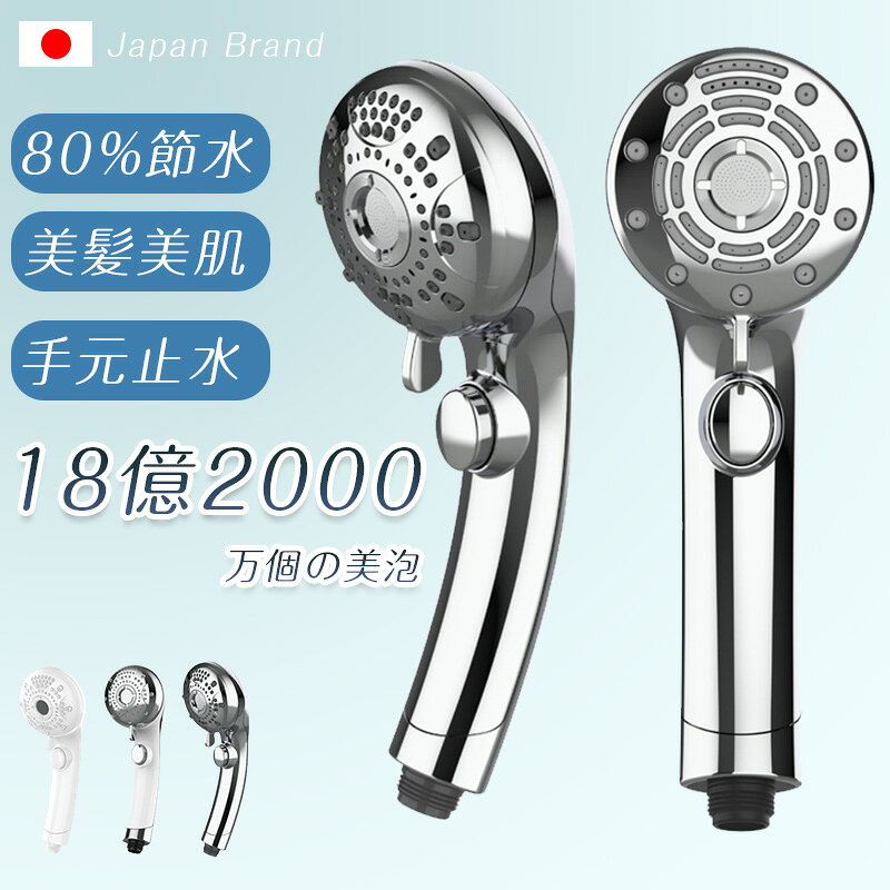 品名滝霧シャワーヘッド品番hs06素材ABSカラーシルバー、ホワイト、グリーン商品説明【8億6500万個マイクロバブル】圧倒的なバブル数最大8億6500万の泡数で洗浄と保湿を叶え、高濃度マイクロバブルという超微細の気泡を作れるもので、洗浄力がよく、落ちなかった体の汚れや頭皮の油脂分を毛穴まで入り込み吸着し、やさしく洗い流してくれます。肌の水分を高くキープできるといった魅力があります。より微細な気泡...