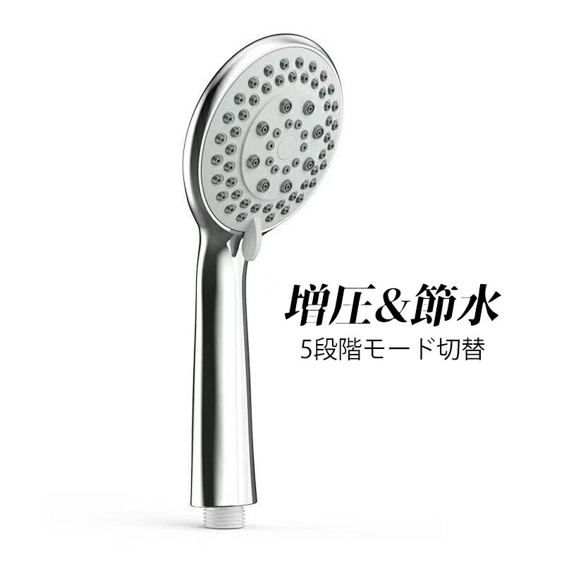 ■シャワーヘッド 増圧 節水 シャワー 5階段モード 増圧シャワーヘッド 高水圧 低水圧 極細水流 手元ストップ M/K/G/T ジョイント 取付簡単 お風呂 肌ケア 頭皮ケア 高洗浄力 毛穴 汚れ除去 美髪 美肌 美容 マッサージ 広幅適用 水漏れ防止テープ