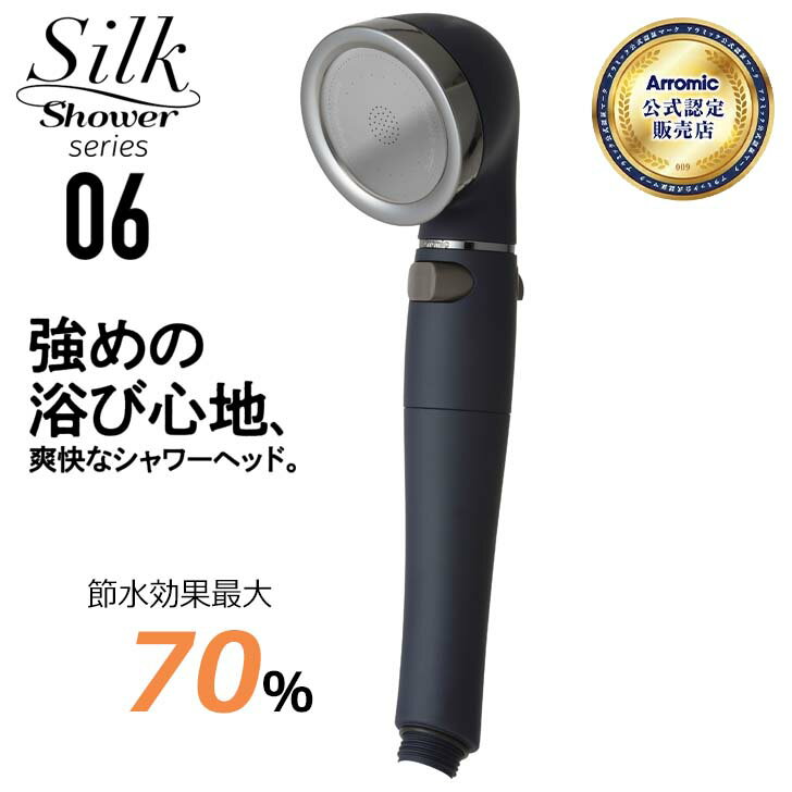 ■【ポイント10倍】【即日発送】 Arromic アラミック シルクシャワーシリーズ06 強水流 ネイビー シャワーヘッド 節水 最大70% 手元ストップ 手元スイッチ 水量調節 増圧 マットコート 高級感 日本製 1年保証 取付簡単 工具不要 バス用品 バスグッズ Arromic公式認定販売店