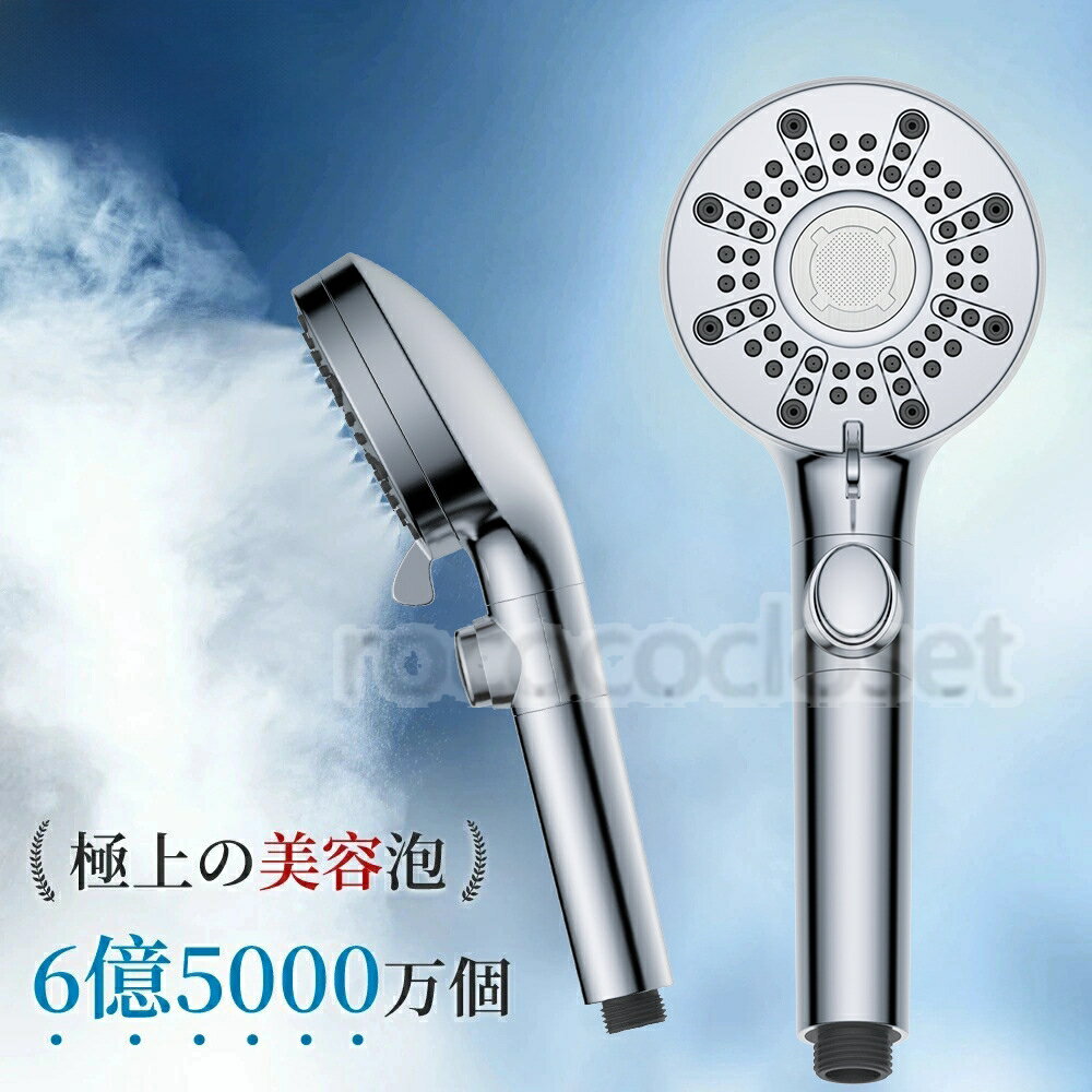 ■シャワーヘッド マイクロナノバブル 節水 水圧強い ミスト 5段階モード 保湿 潤い 美肌 清潔 増圧 毛穴汚れ 頭皮ケア マッサージ 洗浄力 温浴 実用 耐久性 プレゼント アダプタ シルバー 人気 高級感 お祝い