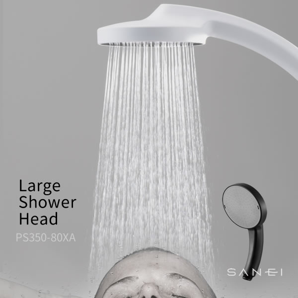 ■シャワーヘッド[ラージシャワーヘッド PS350-80XA]勢いUP 広がり広め 肌あたり少し強め ぜいたくな浴び心地 たっぷりした湯量 各メーカー対応 アダプター3個付[SANEI]【e暮らしR】【ポイント10倍】