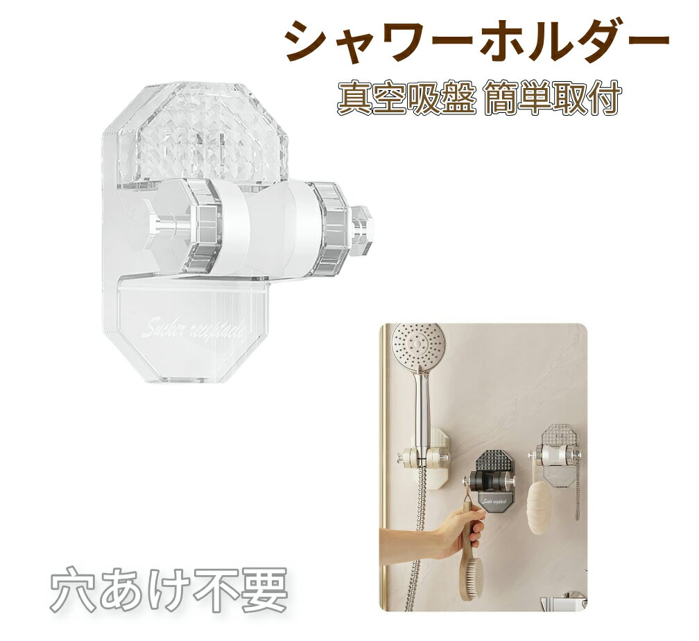 ■シャワーフック 吸盤 穴あけ不要の強力真空|角度調整可能なシャワーヘッドホルダー|賃貸OK・取付簡単・繰り返し使える防水シャワーホルダー