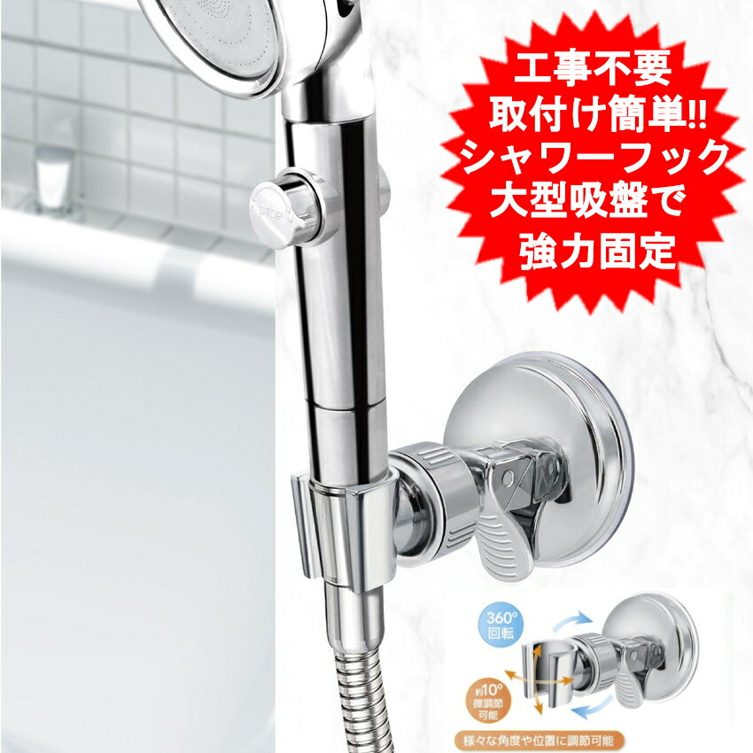 ■シャワーフック 吸盤 交換 シャワーラック シャワーホルダー シャワーヘッドホルダー 角度調整 吸着 穴あけ不要 工事不要 シャワーハンガー 吸盤フック バスルームシャワーフック 取り外し可能 バス用品 風呂用品 簡単取付 浴室用ラック 【送料無料】