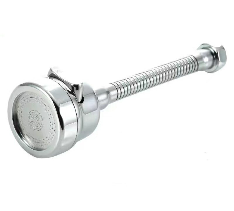 今まで首振りしか出来なかった蛇口が360度上下どこにでもフレキシブルに移動可能。 3種類の出水モード(パルス、シャワー、パルス+シャワー)1つのボタンで出水パターンの切り替えが可能。 食器や食材の洗浄にとっても便利です。 【キッチンでの使用】 ステンレスの10cmホースが付きますので、水流の方向が好きな位置に自由に変換できます。 キッチンなら大きなものや異形のものの洗浄や、シンクのコーナーの隅々ま...