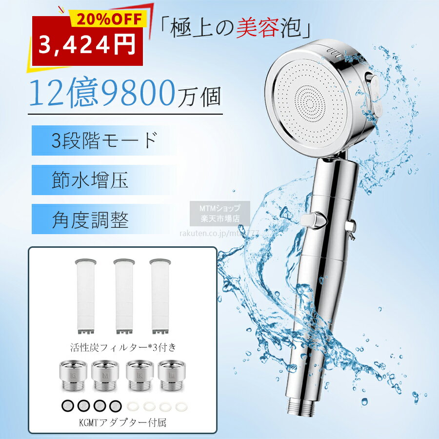 ■【全品10%OFF】シャワーヘッド 節水 しゃわーへっど 塩素除去 手元止水 シャワーヘッド 3段階モード 水圧調整 水量調節 シャワーヘッド マイクロナノバブル shower head 節水シャワー 活性炭フィルター 美肌 保湿 肌ケア 極細水流 お風呂用品 軽量 アダプター付 取付簡単