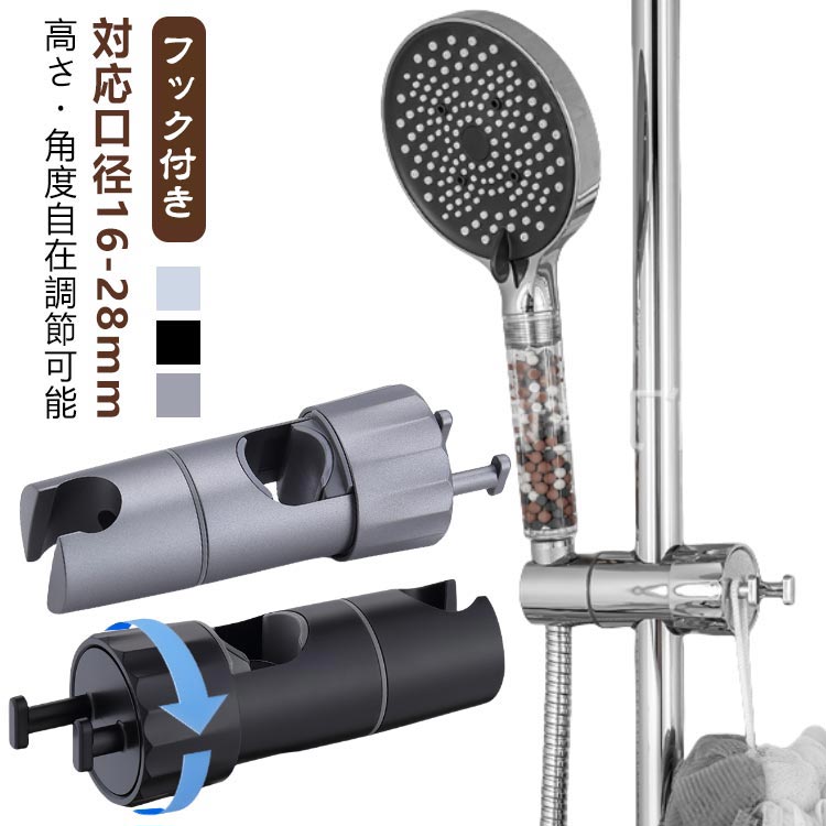 シャワーヘッドの固定&小物ぶら下げ!対応口径16-28mm高さ・角度自在調節可能フック付きシャワーヘッドホルダー従来のシャワーヘッド挿入部の穴のサイズを拡大したスライドバー対応シャワーフックです。また、左右には小物をぶら下げて、タオル,フォームボール,風呂ブラシなど収納できます。16mm~28mmのスライドバーに適用し高さ・角度自在調節可能です。ほとんどの既存のスライドバーを適応するための調整可能...