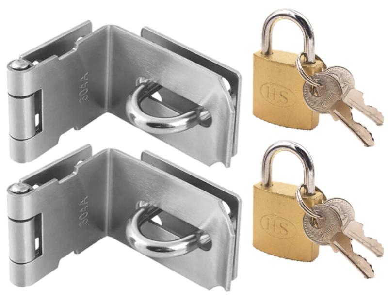 ■heizi ドア ラッチ 鍵 4点セット 南京錠 付き 取付簡単 部屋 物置小屋 窓 扉 の ロック セキュリティ 盗難防止 に